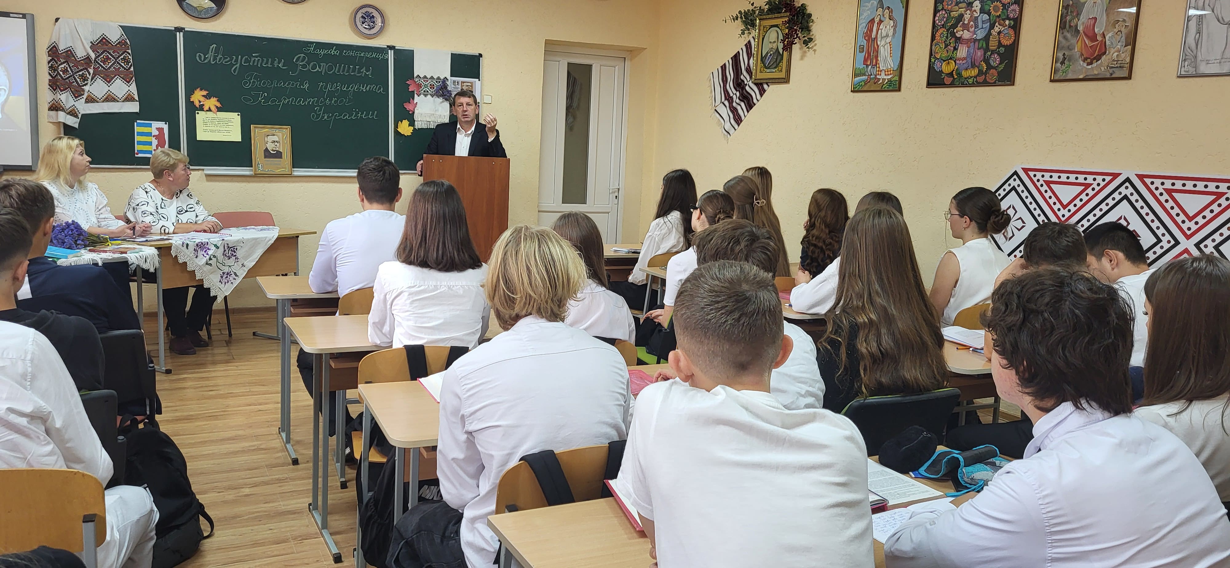 15 вересня в Ужгородському науковому ліцеї відбулася наукова конференція, присвячена презентації книги ’’Августин Волошин. Біографія першого президента України.’’ автором - доктором історичних наук, професором Романом Офіцинським. Письменник захопив учнів 10-их класів своєю розповіддю, дослідженням про багатогранну діяльність найбільшого сина Карпатської України, його чисте, гармонійне, жертвенне й нагороджене вінцем мученика за віру, за народ, за українську соборність життя – Августином Волошиним. Учні поставили ряд запитань Роману Андрійовичу, поспілкувалися з професором, перглянули сторінки книги і, як вдумливі читачі, прийшли до висновку, що проголошення Карпато-Української Держави, хоч навіть у федерації з чехами і словаками, в загальному мало колосальне значення не тільки для карпатських українців на цьому відтинку часу, але й вирішило раз на всі часи приналежність Закарпаття до України.
