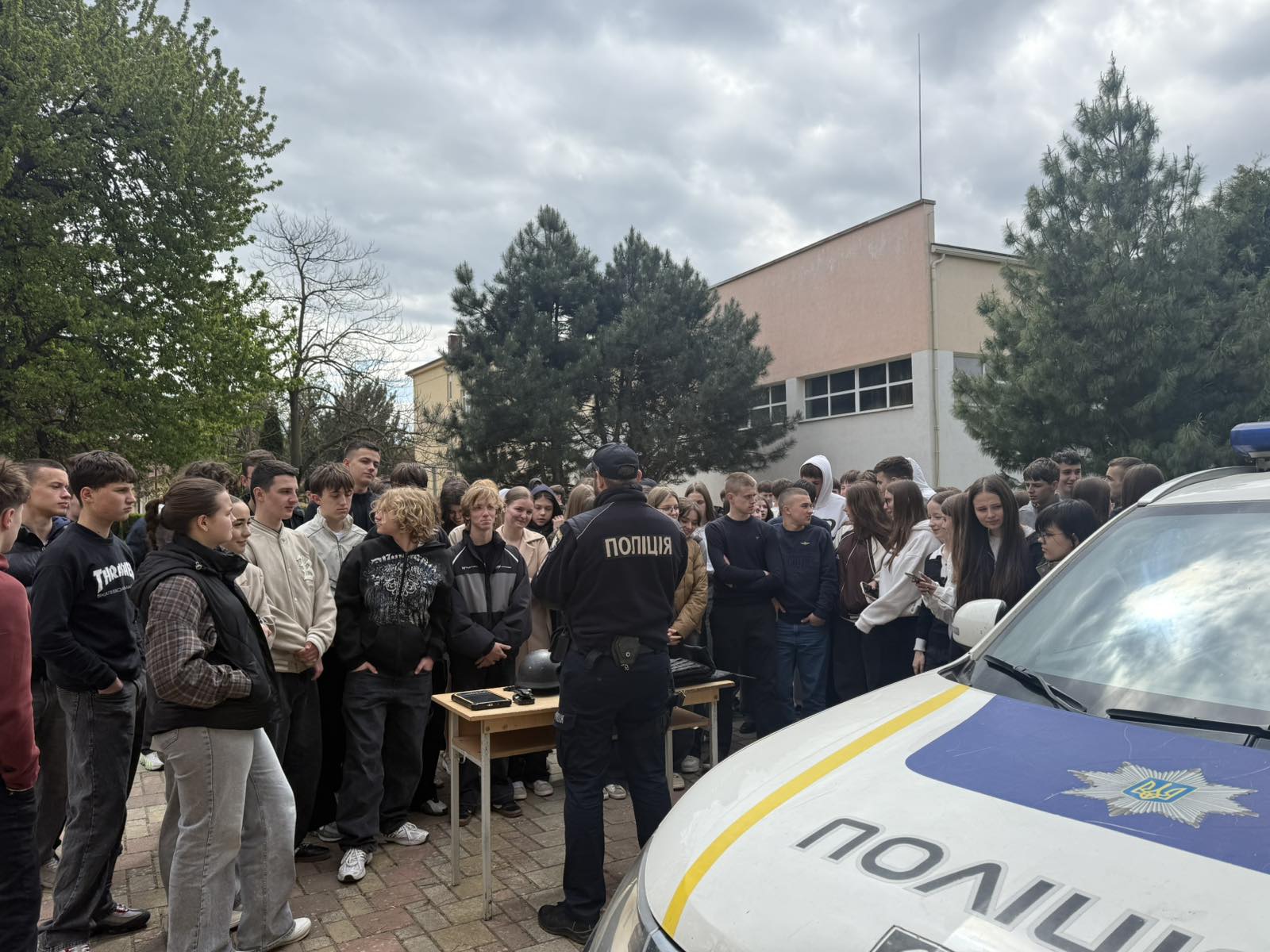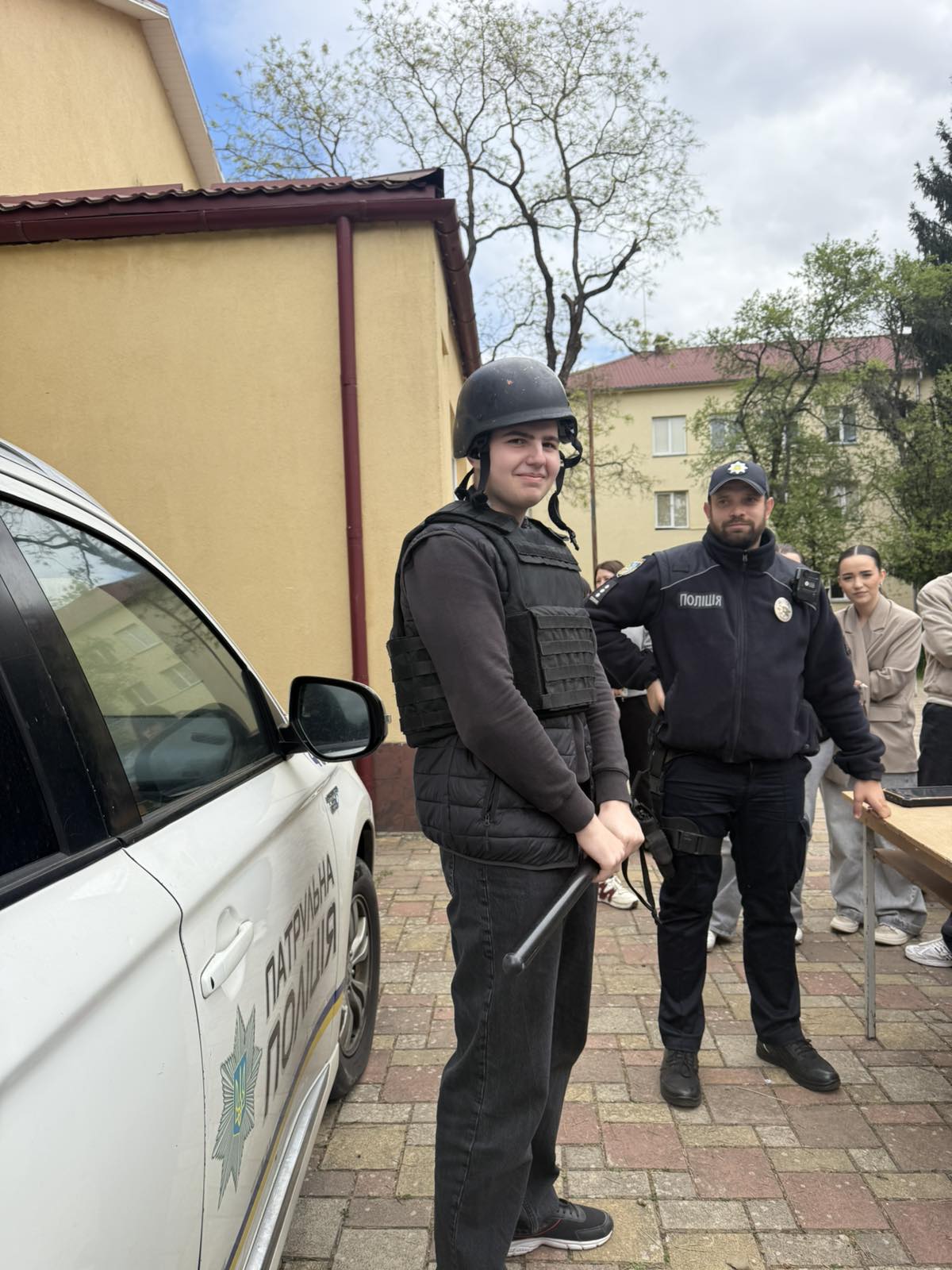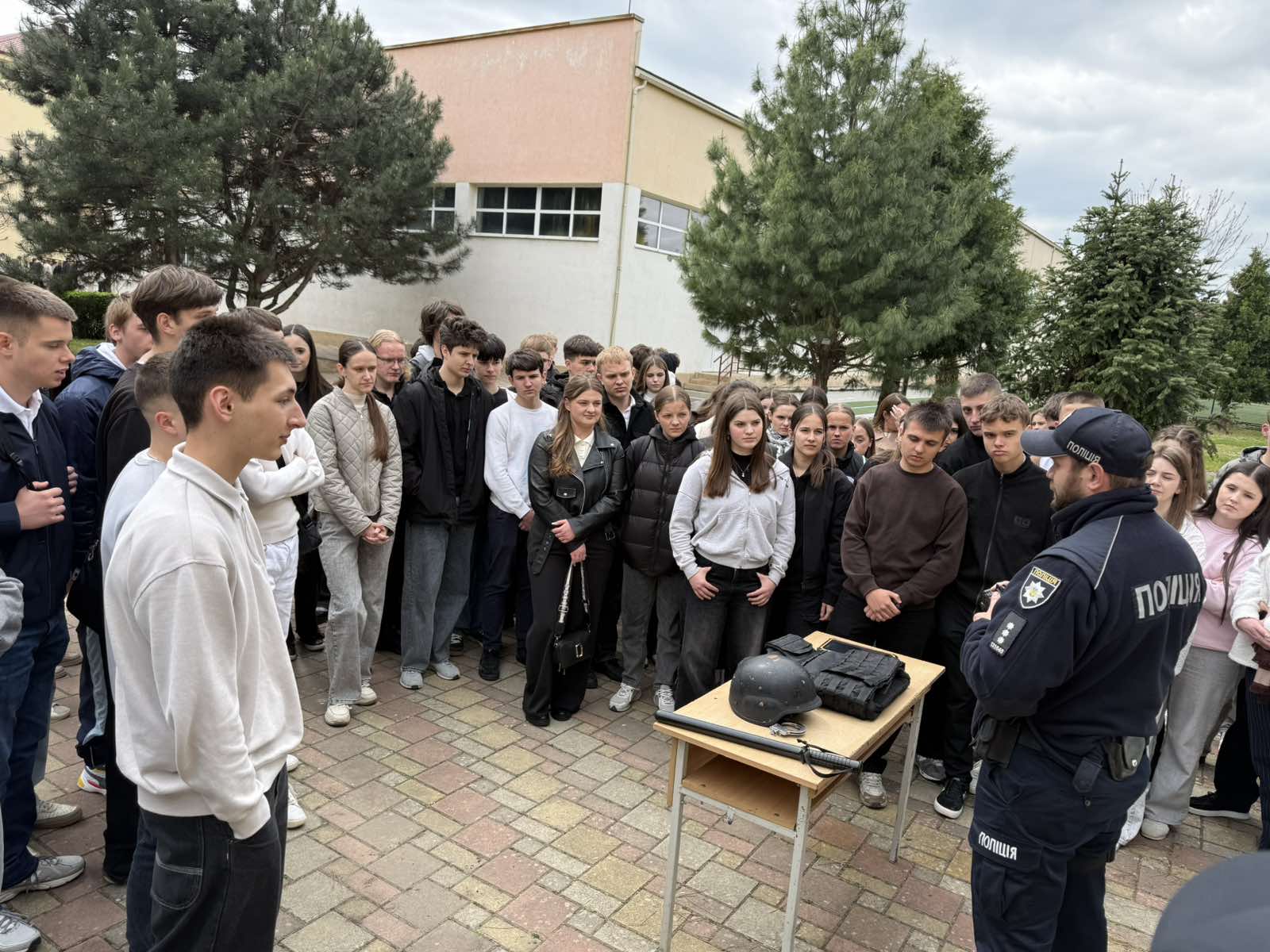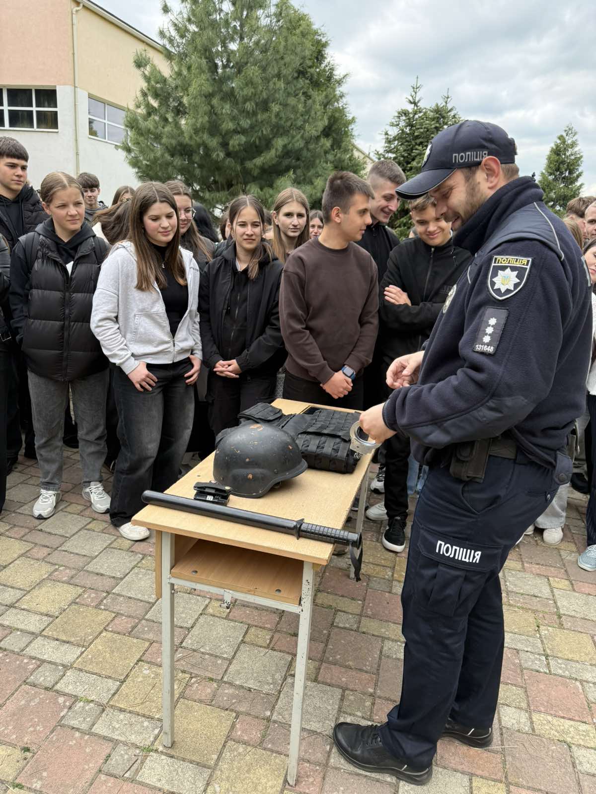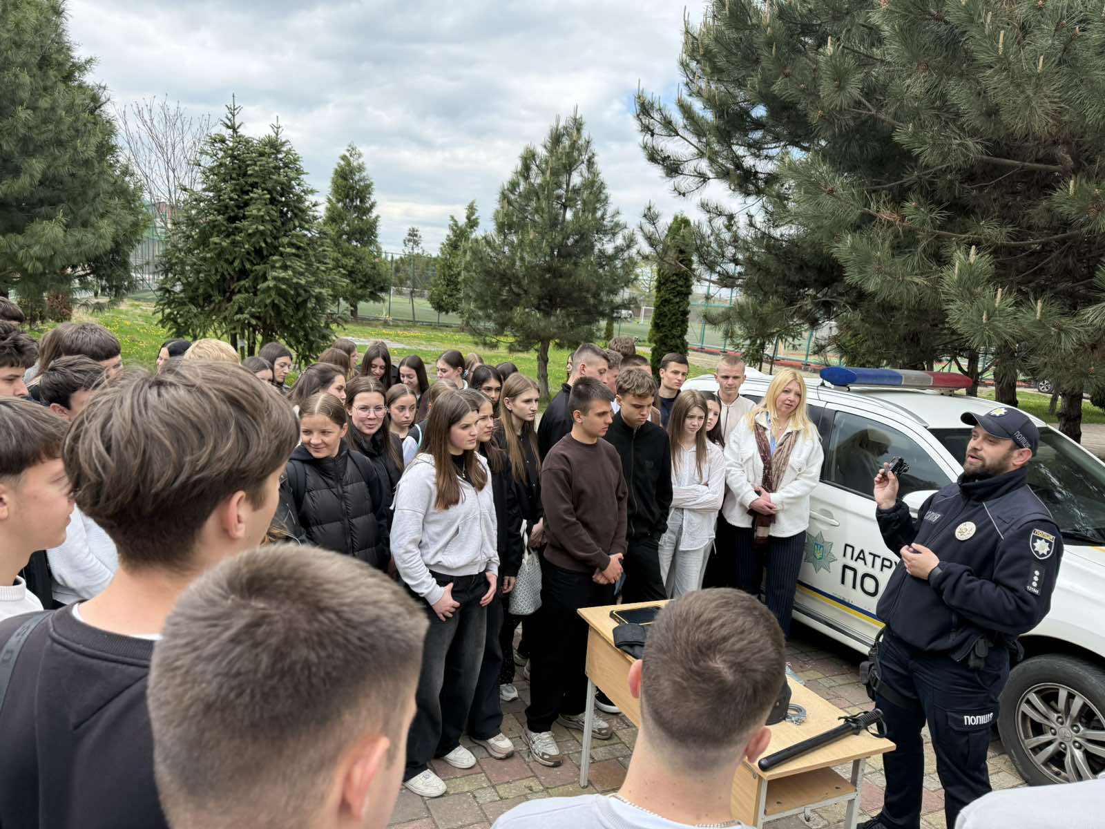 Офіцер служби безпеки провів ознайомлення з елементами екіпірування поліцейського та розповів про його призначення й особливості використання в роботі.