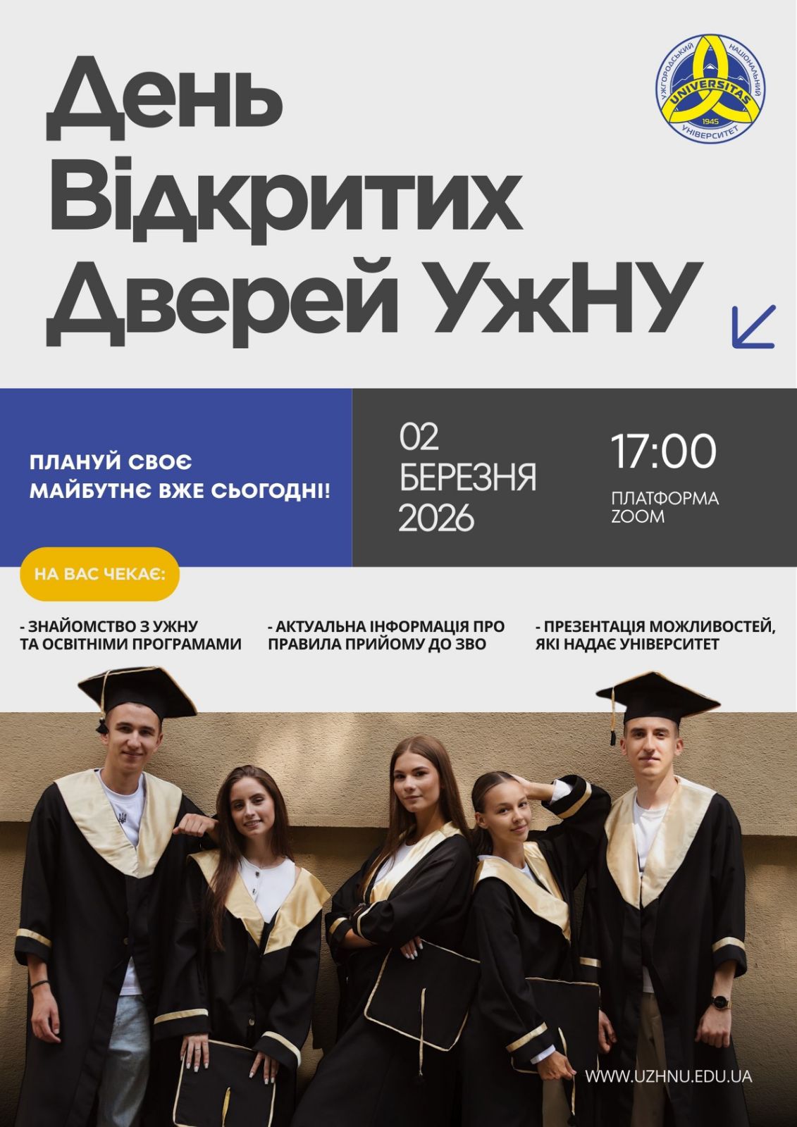 2 березня 2026 року ліцеїсти нашого закладу долучилися до онлайн Дня відкритих дверей Ужгородський національний університет (УжНУ), який відбувся на платформі Zoom.