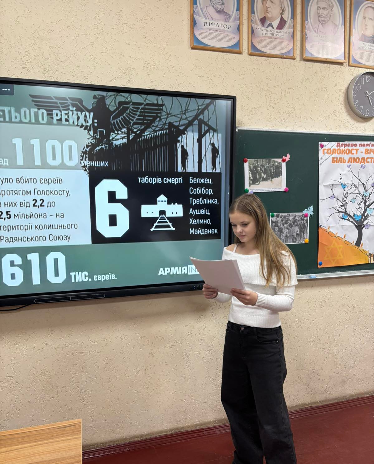 У закладі освіти відбулися години спілкування, присвячені пам’яті жертв Голокосту. Під час заходів учні ознайомилися з трагічними сторінками світової історії, говорили про цінність людського життя, толерантність, повагу до різних народів і культур.